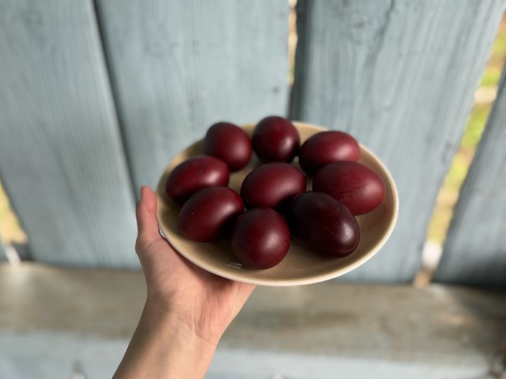 Easter in Georgia is closely tied to symbolic food traditions, with red-dyed eggs being the most recognizable element. These eggs represent new life and are traditionally cracked together in a playful ritual among family and friends, along with the phrase: “Christ is risen” (ქრისტე აღსდგა), „Truly he is risen“ (ჭეშმარიტად). Another essential part of the Easter table is Paska, a sweet, tall bread often decorated with crosses and shared during meals. Together, these simple yet meaningful foods reflect the spirit of renewal and celebration that defines Georgian Orthodox Easter.